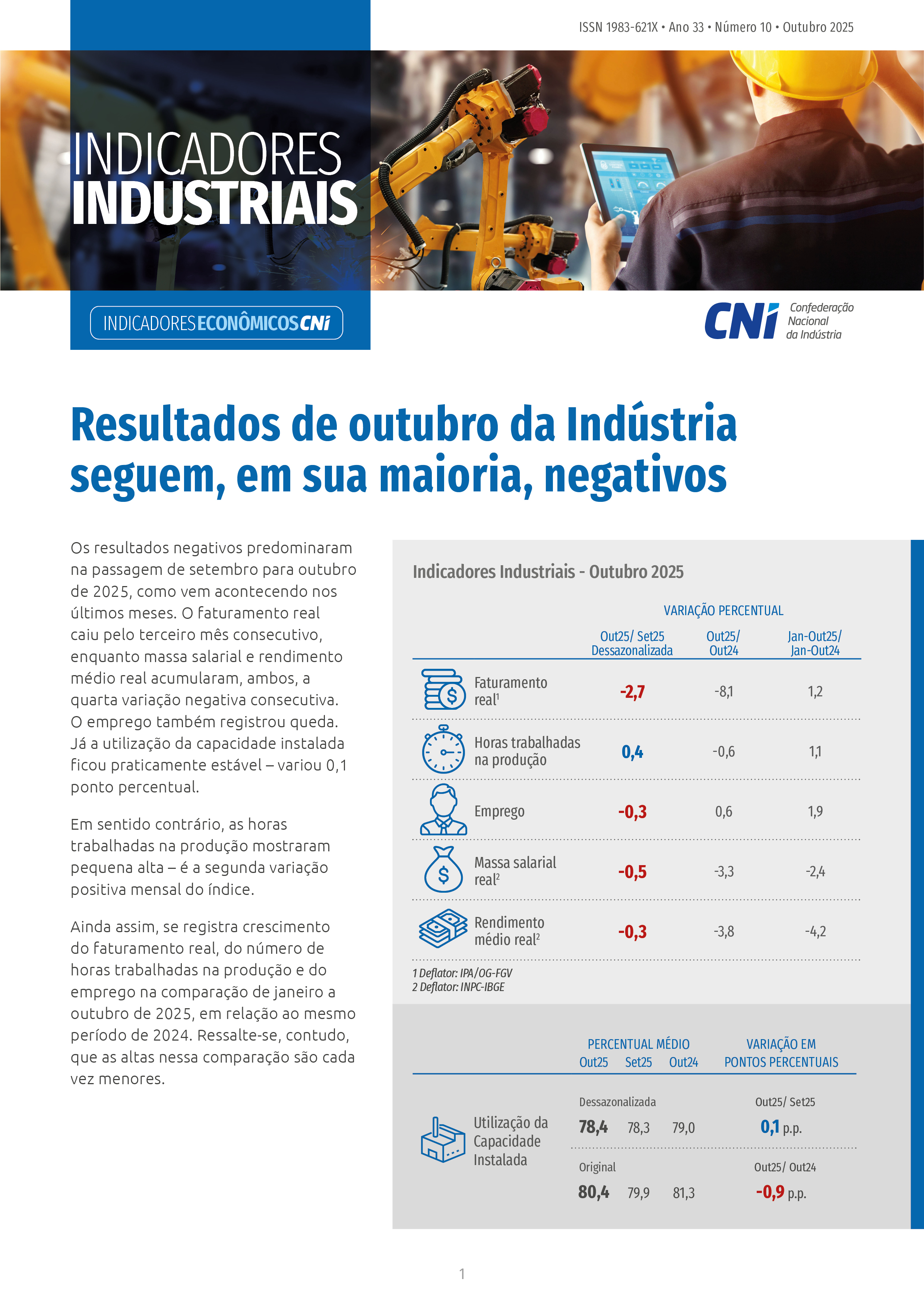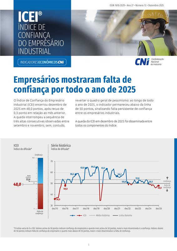 Em novembro, o Índice de Confiança do Empresário Industrial (ICEI) da Indústria da construção registrou a terceira elevação consecutiva e alcançou 49,2 pontos. O índice aumentou 3,4 pontos no período, passando de uma situação de falta de confiança intensa e disseminada para uma situação cada vez menos negativa. Essa melhora se deve às expectativas com relação à economia e suas empresas de forma mais ampla, mas a análise de expectativas mais pontuais revela certa cautela do empresário.