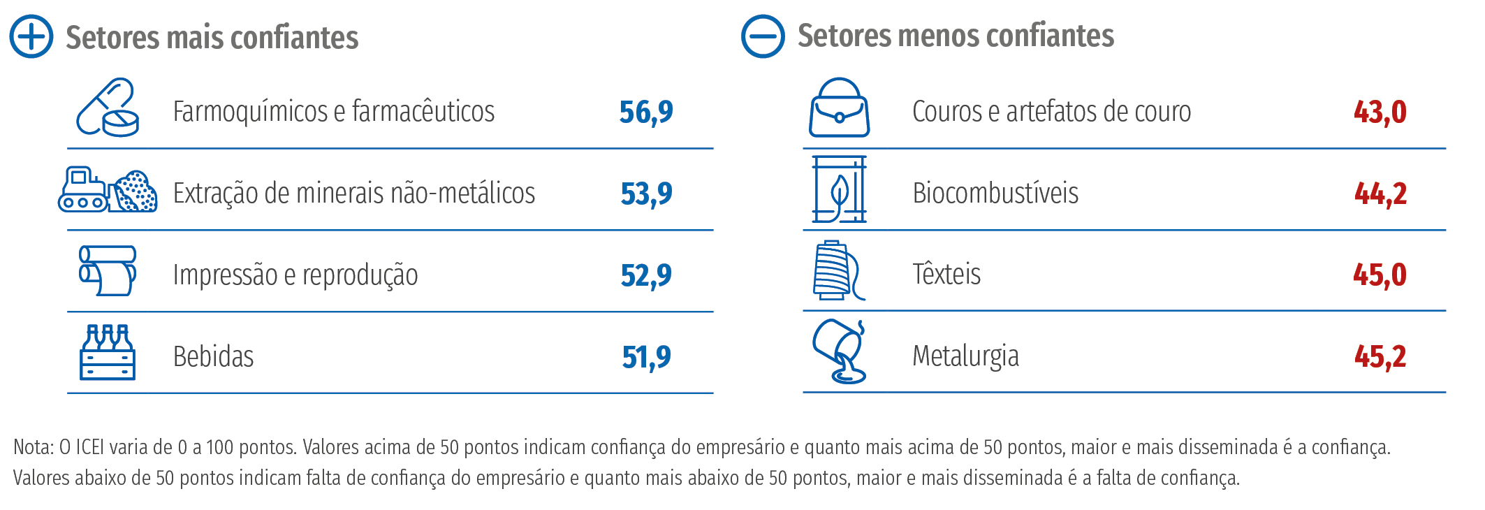 O ICEI, como um indicador antecedente do desempenho industrial, sinaliza as mudanças de tendência da produção industrial. A pesquisa que coleta as informações necessárias para a construção do ICEI é realizada conjuntamente com as Sondagens Industrial e Indústria da Construção. O ICEI setorial apresenta os resultados da indústria extrativa, da construção e da transformação, assim como seus setores. A publicação também disponibiliza índices de confiança para os três portes de empresa (pequeno, médio e grande) e para as cinco regiões geográficas do país.