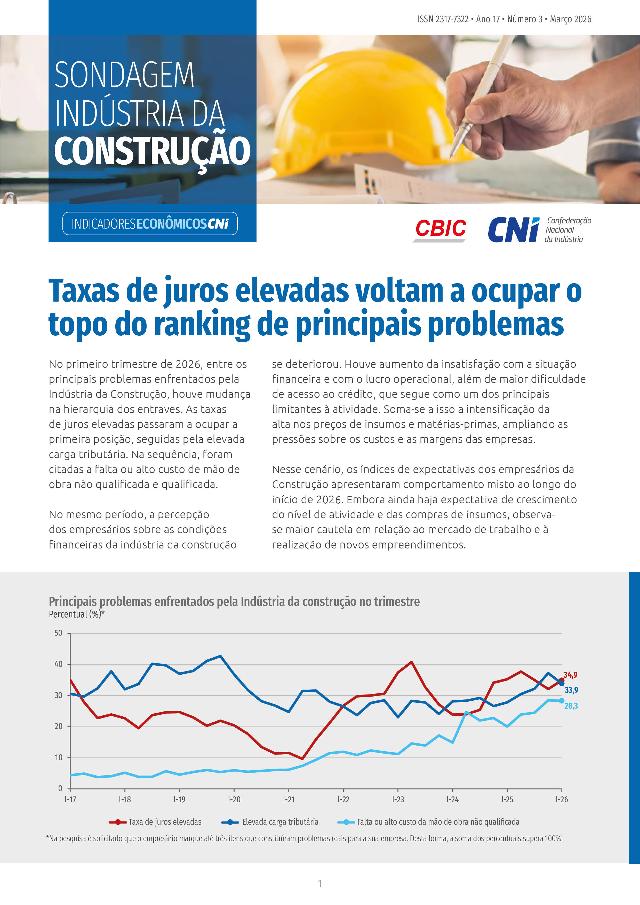 O Índice de Confiança do Empresário Industrial (ICEI) recuou 1,4 ponto em abril de 2026, passando de 46,6 pontos para 45,2 pontos. Trata-se da terceira queda consecutiva do indicador, que acumula retração de 3,3 pontos nos últimos três meses. Com esse resultado, o ICEI atinge o menor nível desde junho de 2020, quando registrou 41,2 pontos, quando a confiança foi afetada pelos impactos iniciais da pandemia de Covid-19.