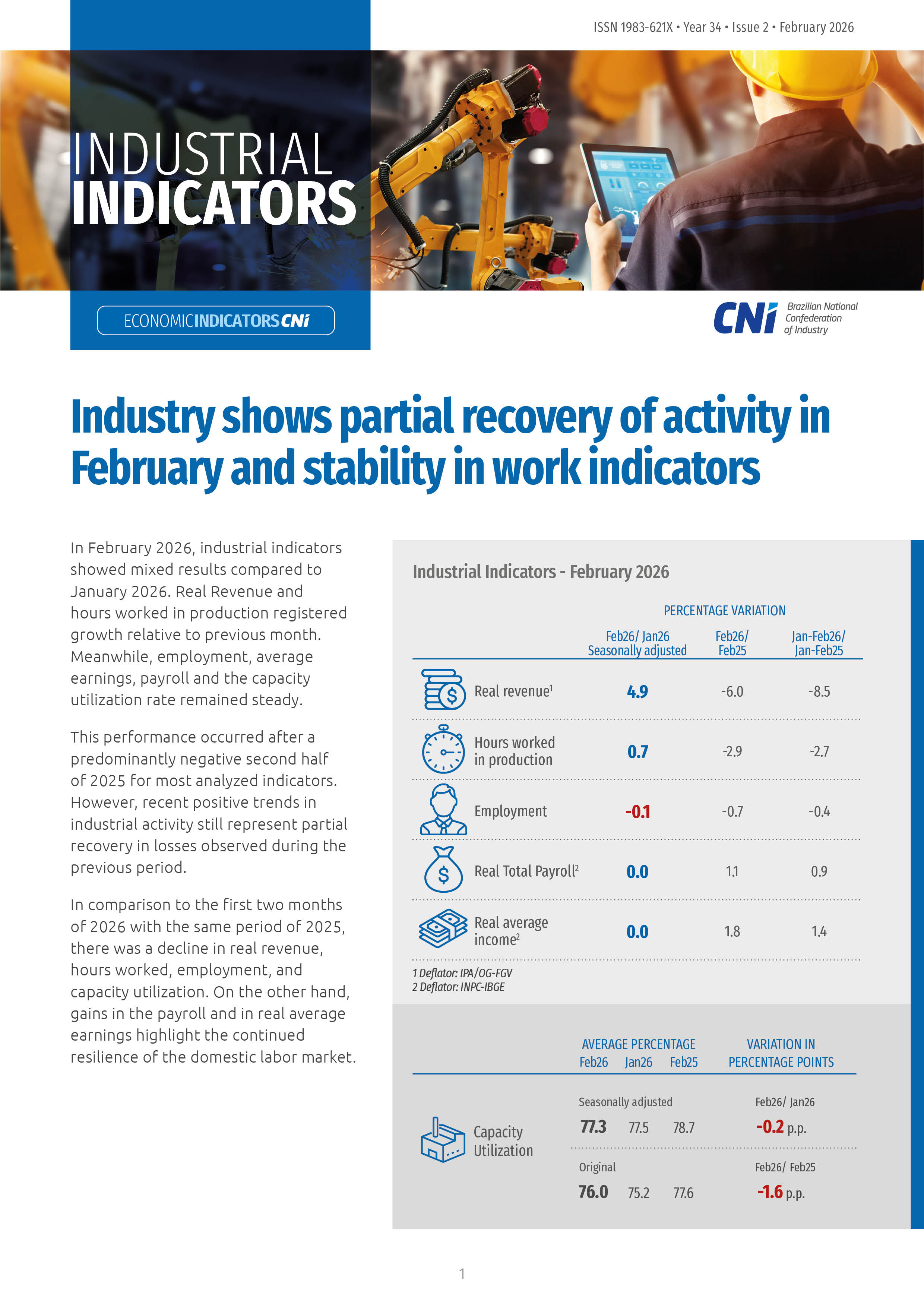 The effective inventory index against usual levels interrupted a sequence of two consecutive declines and recorded a positive variation in the period. However, the indicator remains below the 50-point dividing line, indicating that industrial stocks remain at a lower level than planned. In this scenario, except for the number of employees expectations index, which remained stable in the period, the other expectation indicators recorded a negative variation, interrupting a sequence of two consecutive highs. In the same direction, the industry investment intention index retreated for the third consecutive month.