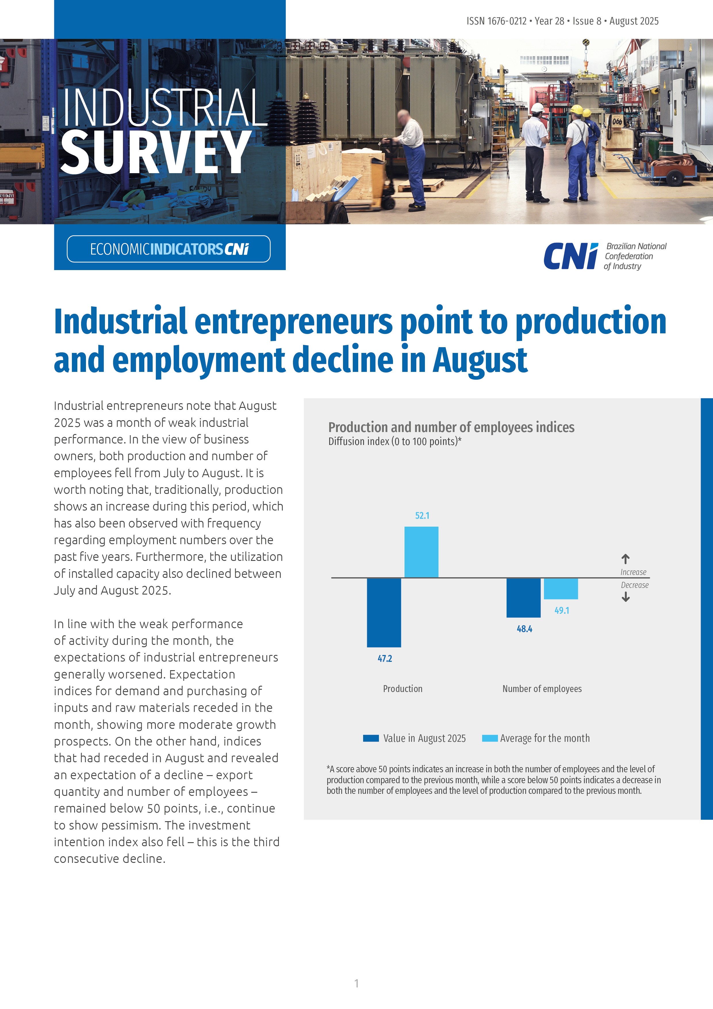 This survey is mainly intended to capture investment intentions of Brazilian industry, as well as the main obstacles faced by companies in carrying out their investment plans. Launched in 2009, this business opinion survey is carried out annually.
