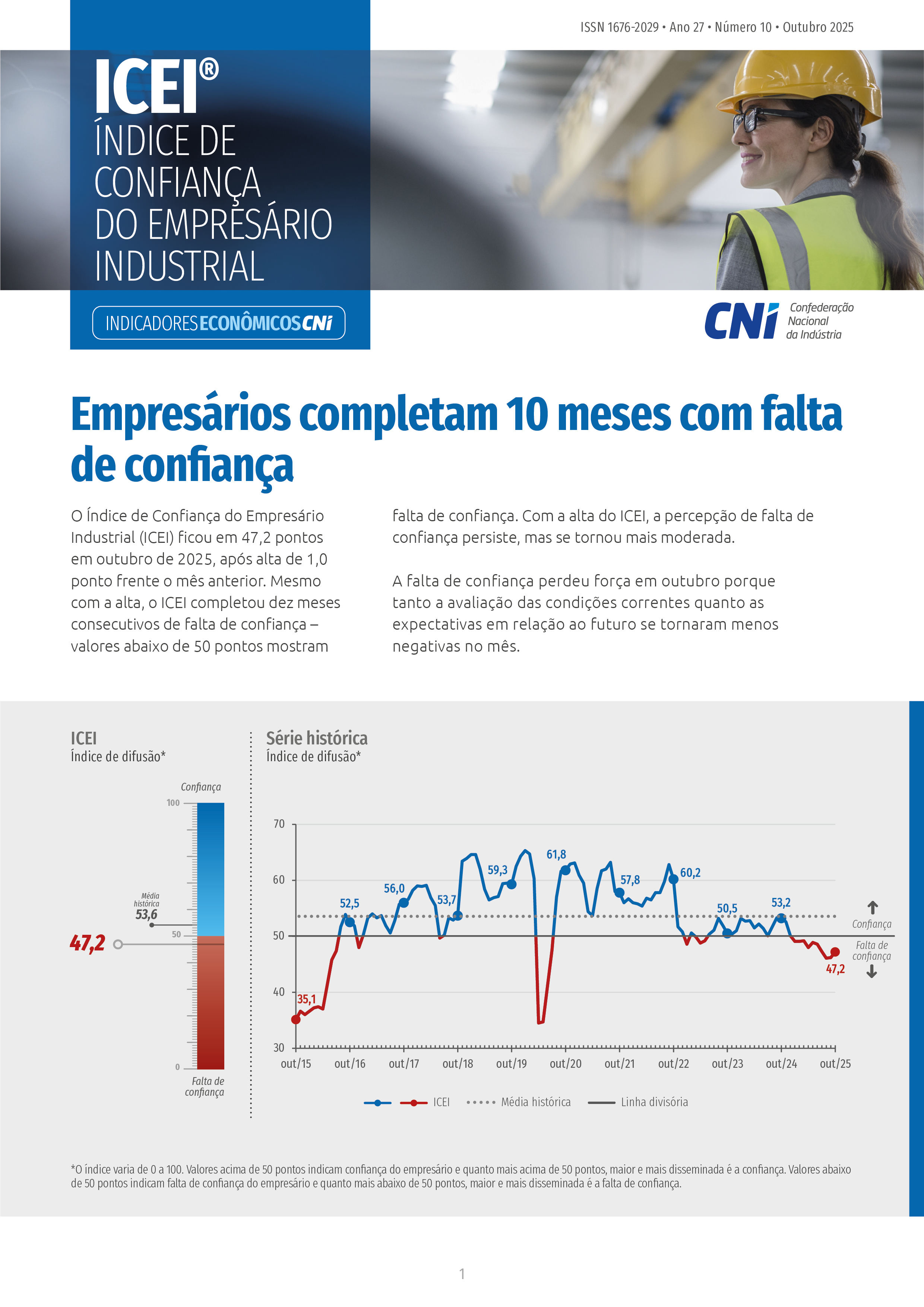 O Panorama da Pequena Indústria faz trimestralmente a análise dos dados da pequena indústria levantados com a Sondagem Industrial, Sondagem da Construção e o Índice de Confiança do Empresário Industrial. A pesquisa inclui três novos índices: o Índice de Desempenho, que identifica qual foi o desempenho da atividade da pequena indústria no trimestre; o Índice de Situação Financeira, que avalia a situação financeira das pequenas empresas; e o Índice de Perspectivas, que revela as expectativas do empresário. O Panorama também analisa os principais problemas enfrentados pela pequena indústria e a evolução do ICEI, considerando somente as pequenas empresas.