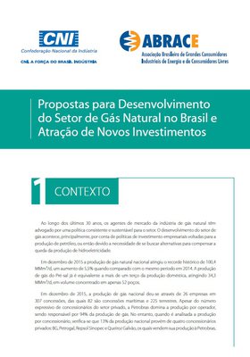 O documento faz um contextualização, citando números e consumo do gás natural, barreiras ao investimento privado e propostas para acelerar o desenvolvimento no setor no Brasil.