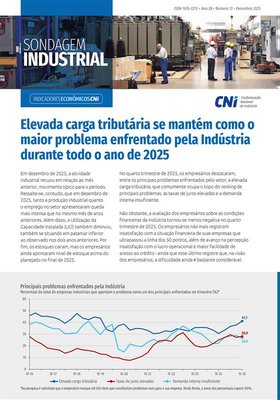 No quarto trimestre de 2025, os empresários destacaram, entre os principais problemas enfrentados pelo setor, a elevada carga tributária, que comumente ocupa o topo do ranking de principais problemas, as taxas de juros elevadas e a demanda interna insuficiente. Não obstante, a avaliação dos empresários sobre as condições financeiras da indústria tornou-se menos negativa no quarto trimestre de 2025. Os empresários não mais registram insatisfação com a situação financeira de suas empresas que ultrapassou a linha dos 50 pontos, além de avanço na percepção insatisfação com o lucro operacional e maior facilidade de acesso ao crédito - ainda que esse último registre que, na visão dos empresários, a dificuldade ainda é bastante considerável.