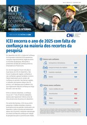 Em dezembro de 2025, o Índice de Confiança do Empresário Industrial (ICEI) apresentou variações majoritariamente negativas entre os recortes da pesquisa, reforçando o predomínio da falta de confiança entre os empresários ao final do ano. A percepção de falta de confiança prevalece entre os empresários industriais no encerramento do ano. As regiões Sul, Sudeste e Norte, todos os portes de empresa e 22 dos 29 setores avaliados indicaram falta de confiança por parte dos empresários.